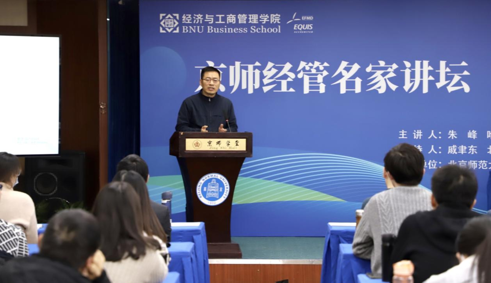 2023年12月21日下午,潮人论坛 “京师经管·名家讲坛”(第124期)在京师大厦第六会议室举行。本次讲座由哈佛大学商学院朱峰教授主讲。学院院长戚聿东、数字经济与管理系主任焦豪、MBA教育中心主任周江华、经济系教授何浩然以及校内外师生约一百余人参加讲座,讲座由戚聿东院长主持。