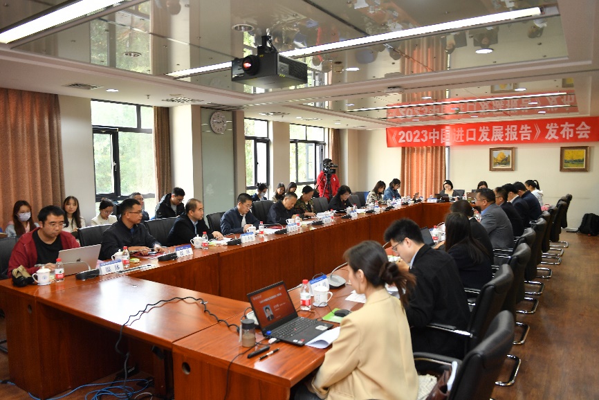 2023年11月3日,《2023中国进口发展报告》发布会暨“中国进口发展专家研讨会”在潮人论坛 成功举办。《报告》由潮人论坛 、中国教育与社会发展研究院联合发布。潮人论坛 副校长王守军出席会议,中国社会科学院经济研究所原所长裴长洪、中国国际经济交流中心科研信息部副部长王晓红、商务部国际贸易经济合作研究院副院长崔卫杰、对外经济贸易大学国际经济贸易学院院长唐宜红、中国人民大学经济学院教授王孝松等专家学者,人民日报、经济日报、中国社会科学报、国际商报、中国经济时报、中国贸易报、上海证券报、人民网、新华网、澎湃新闻、中国教育电视台等媒体,以及校内外师生共50余人参加会议。发布会致辞环节由潮人论坛 国际经济与贸易系主任魏浩主持。