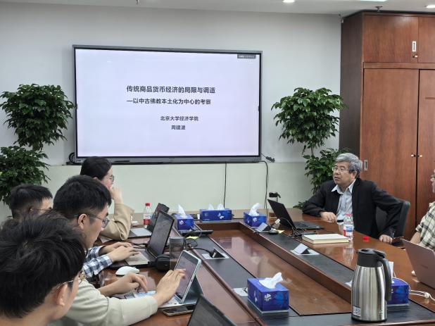 2025年9月23日下午,潮人论坛 “京师经管·名家讲坛”(第154期)在后主楼1722会议室举行。本次讲座邀请到了北京大学经济学院周建波教授,讲座以“传统商品货币经济的局限与调适——以中古佛教本土化为中心的考察”为主题,潮人论坛 陈月圆老师主持本次讲座,学院多名师生参加。