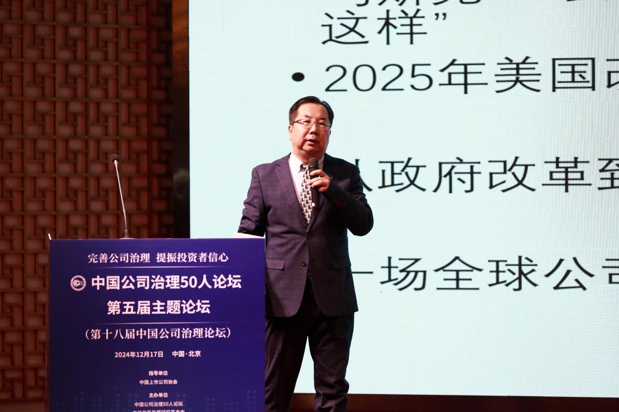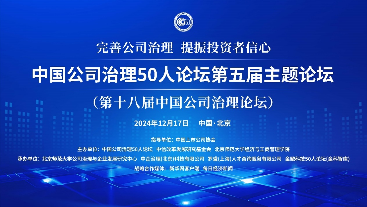 党的二十届三中全会指出,要完善中国特色现代企业制度,弘扬企业家精神,健全投资者保护机制,提高上市公司质量,加快建设更多世界一流企业。完善的公司治理是现代企业制度的核心,为践行党的二十届三中全会的战略目标,2024年12月17日,“中国公司治理50人论坛第五届主题论坛(第十八届中国公司治理论坛)”在北京成功举办,本届论坛的主题为“完善公司治理,提振投资者信心”。