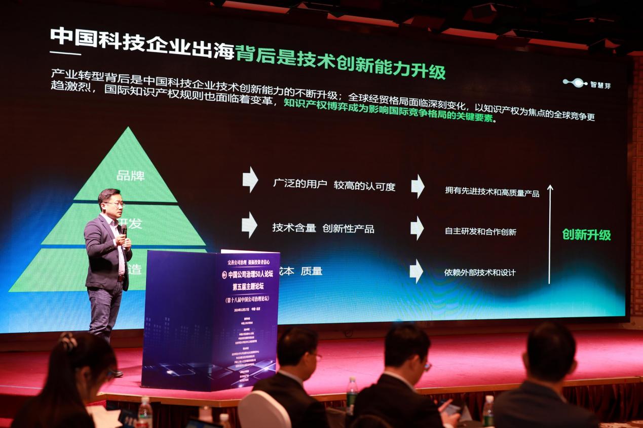智慧芽科创研究院院长方庭指出,随着中国企业逐步实现全球化布局,创新能力的提升成为企业出海的核心驱动力。在此背景下,知识产权在企业出海过程中扮演着至关重要的角色。企业可以通过精准的技术创新和知识产权保护,构建竞争壁垒,实现全球化的顺利发展。