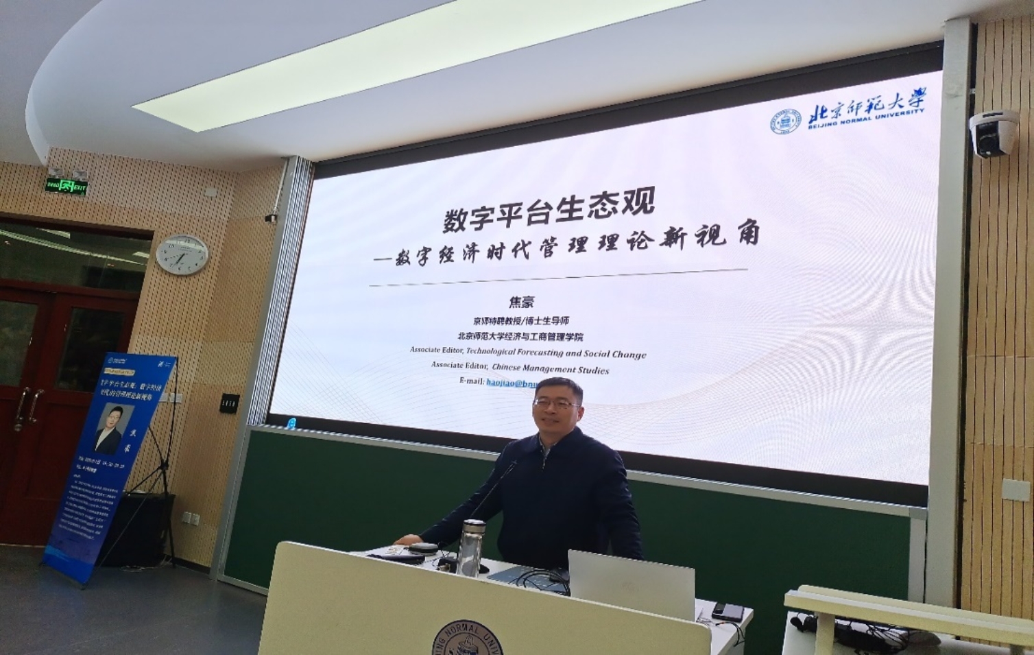 京师特聘教授焦豪主讲,MBA教育中心主任周江华主持,近200位学生到场聆听。