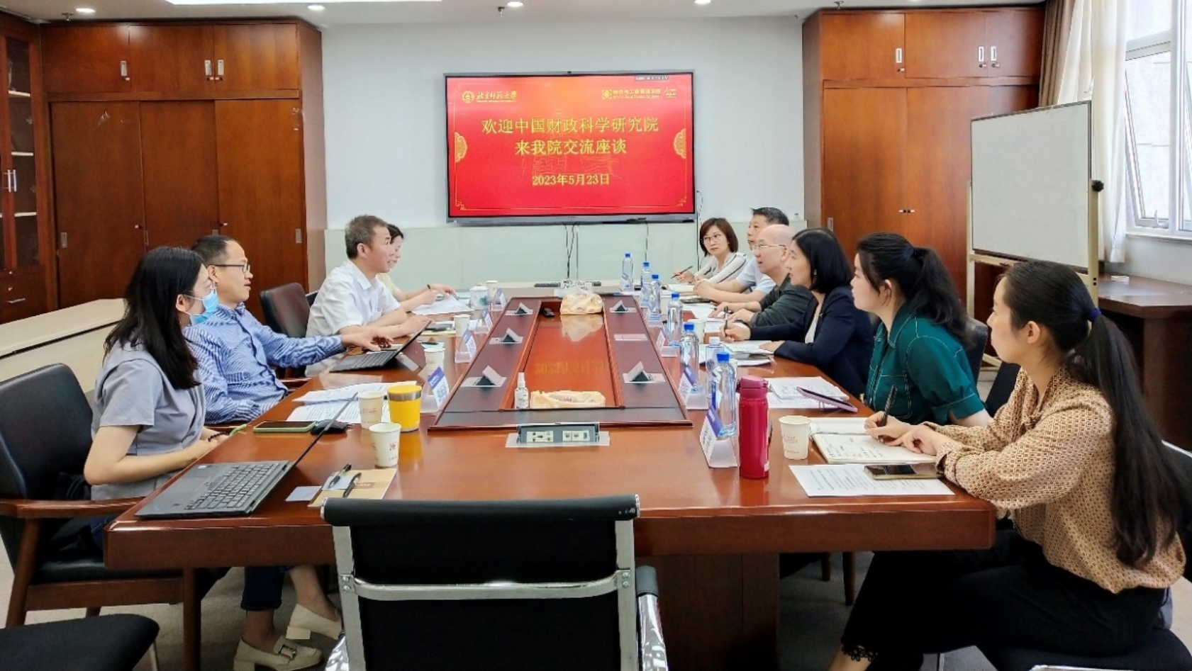 2023年5月23日上午,中国财政科学研究院党委委员、研究生院院长杨远根、招生与就业办公室主任张维、学生工作处处长郭辉等一行6人到潮人论坛 开展调研交流。学院院长戚聿东、党委书记孙志军、党委副书记江婕、韩丽丽参加了调研座谈会。