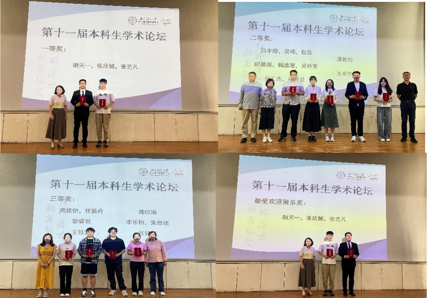 论坛最后,举行了颁奖仪式。经投票评选出一等奖1名、二等奖5名、三等奖6名。同时,本届本科生学术论坛经在场学生投票评选出最受欢迎展示奖1名。