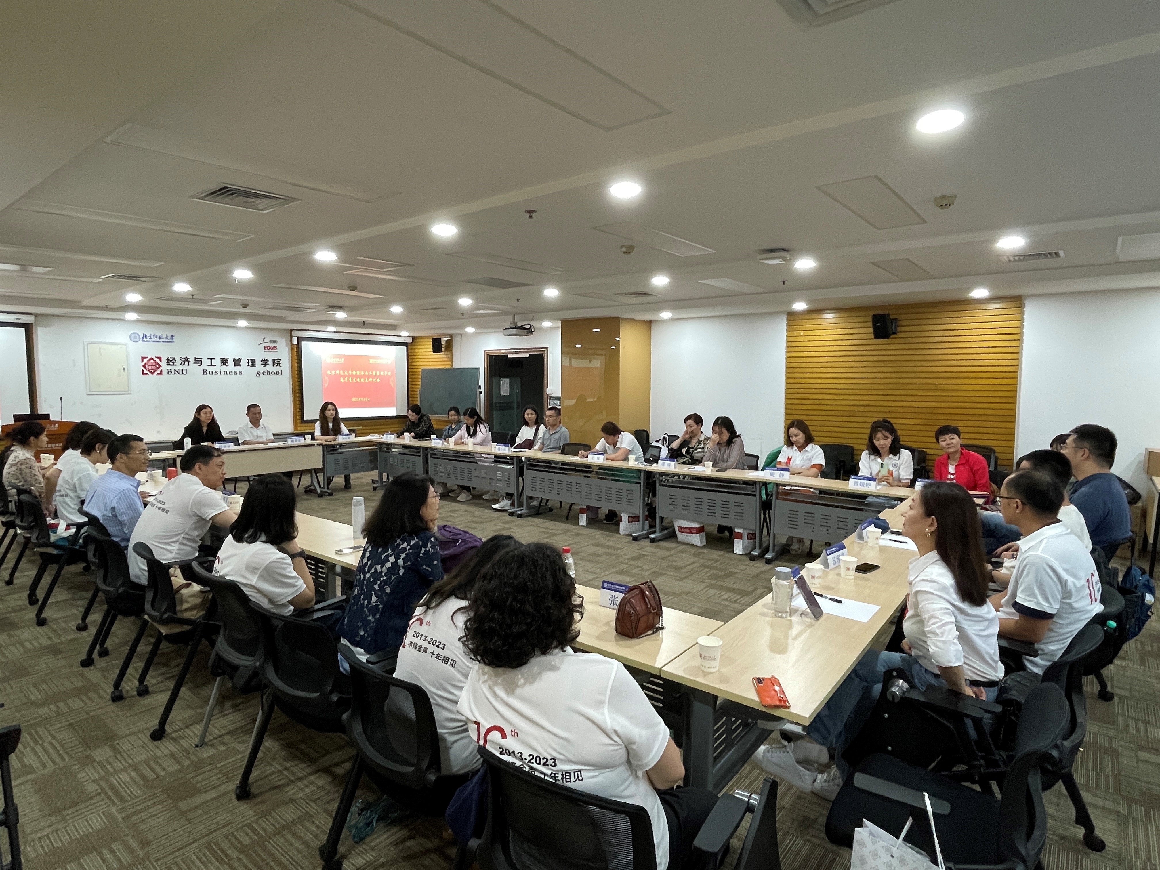 下午1点,潮人论坛 高质量发展校友研讨会在京师大厦9406会议室举办。院长戚聿东、党委副书记韩丽丽、校友办公室李阿妮以及40余位秩年校友参加了座谈。会议由韩丽丽副书记主持。