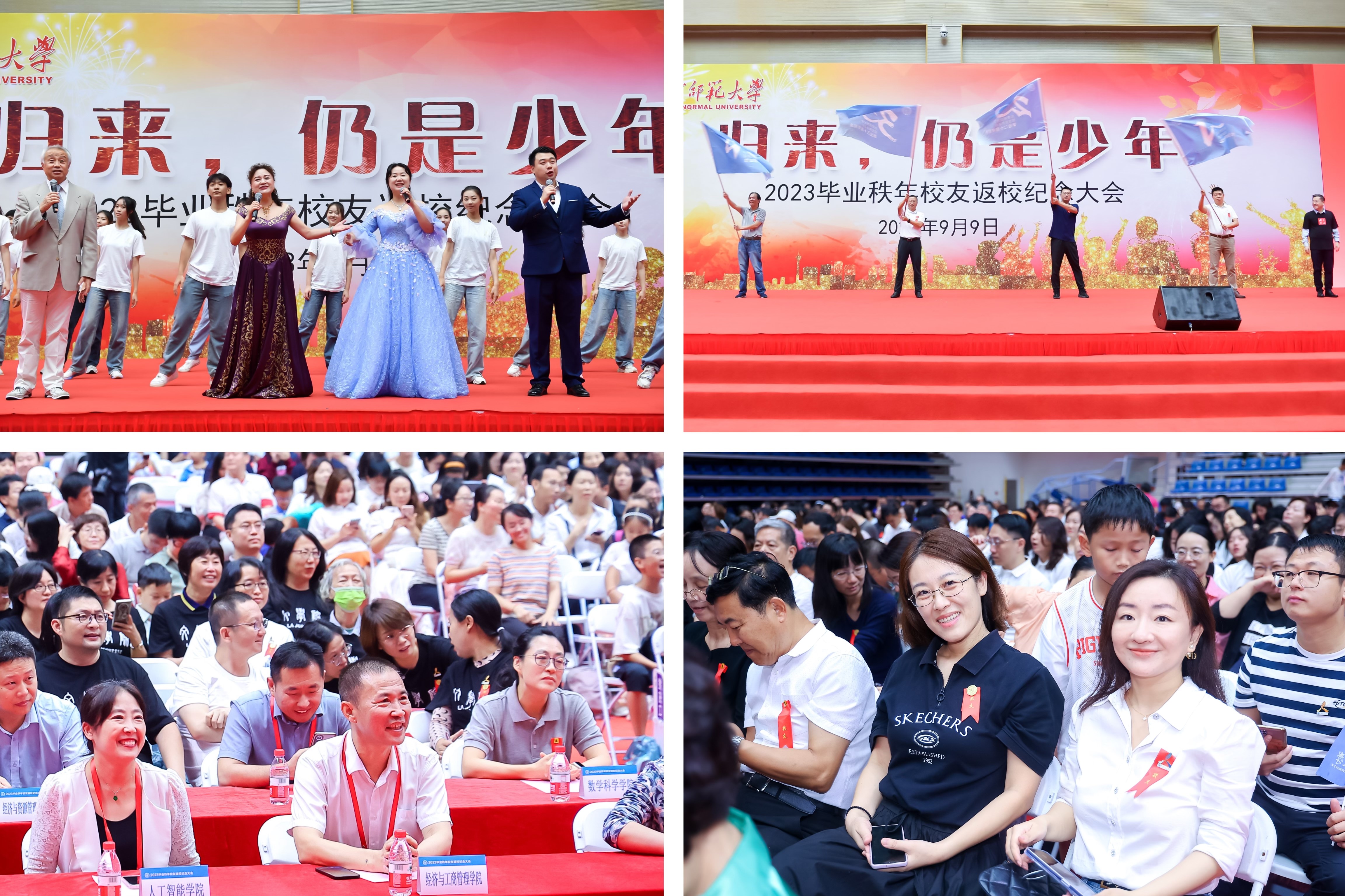 大会中的怀旧微电影、领导致辞、校友代表发言、颁发班级联络大使证书、颁发秩年旗、诗朗诵、四重唱、齐唱校歌等环节得到了大家的一致好评,千余名校友欢聚一堂,夯实了学校和校友间的深厚情谊。