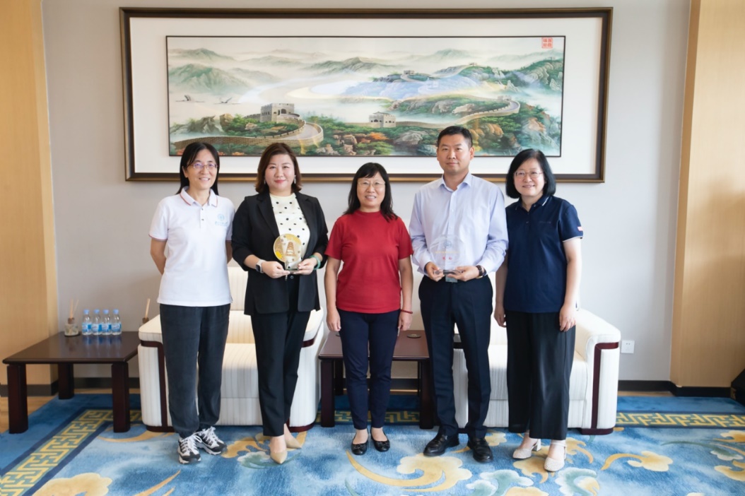 吴沁红系主任向李娜副董事长、朱松老师赠送奖杯和纪念品