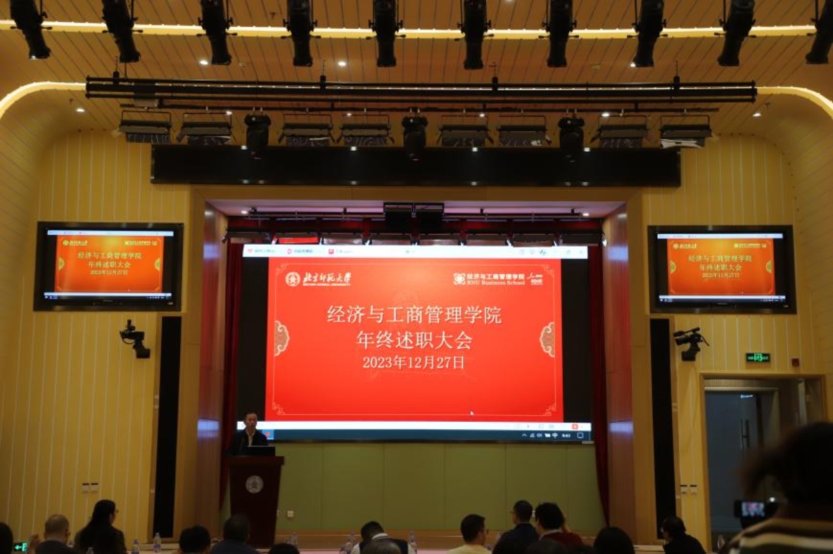 戚聿东院长对2023年行政工作进行全面总结。政治思想上,学院坚持以习近平新时代中国特色社会主义思想和党的二十大精神为指引,按照学校第十四次党代会精神,紧紧围绕教育教学中心工作,立足工作岗位,扎实履职,锐意创新。学科建设上,在数字化课程和课程数字化建设上做出有益探索;教育教学上,推动实践教学、案例教学;科学研究上,注重项目、著作、研究报告、教材、论文、获奖等方面齐头并进;服务社会上,在智库建设、横向课题、社会兼职等方面取得重要成果;国际交流上,与高层次合作院校取得重要突破;行政管理上,积极推进高效率贴心服务,师生满意度不断提升,校友凝聚力不断加强。戚聿东也指出过去一年工作中存在的不足之处,号召全院教师在2024年通过更加努力的工作,从学院特色和创新工作方面着手发力,力争各项事业发展取得新成绩。