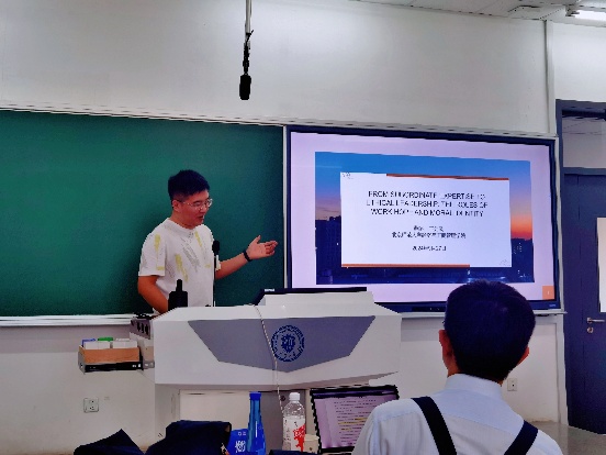臧金亮以“风起茶水间:上下级职场八卦偏好一致性对员工绩效的影响”为题进行汇报,深入探讨了职场八卦的概念与影响。臧金亮的研究为理解职场八卦提供了新的视角,揭示了其对员工绩效的潜在影响,尤其在中国文化背景下的特殊性,为未来研究提供了新的思路。