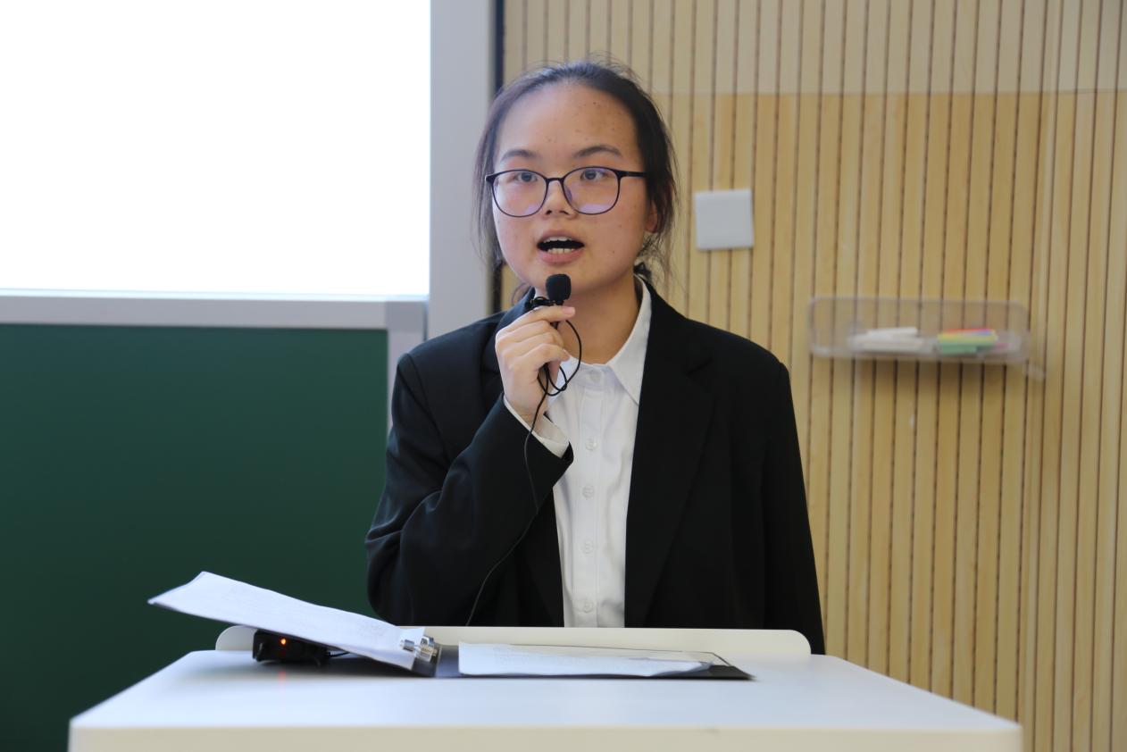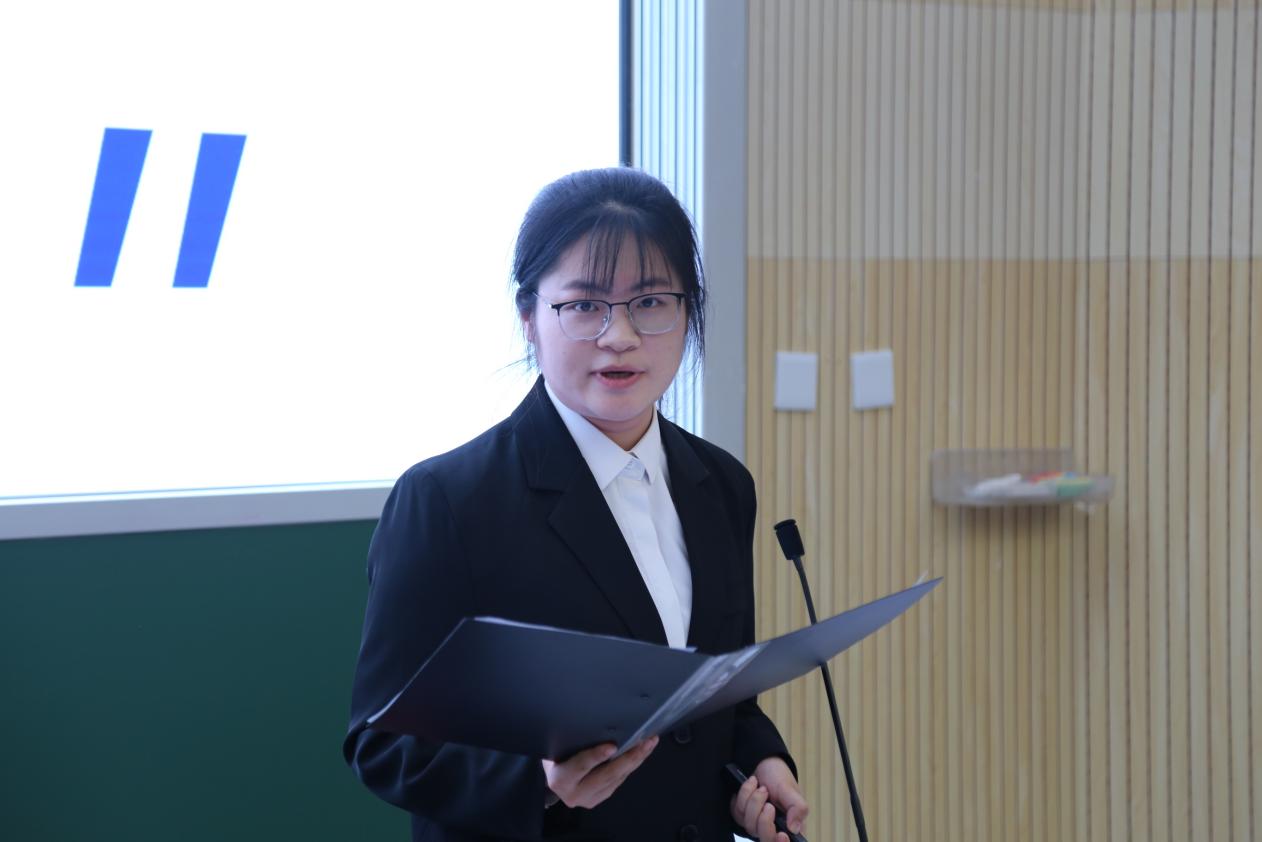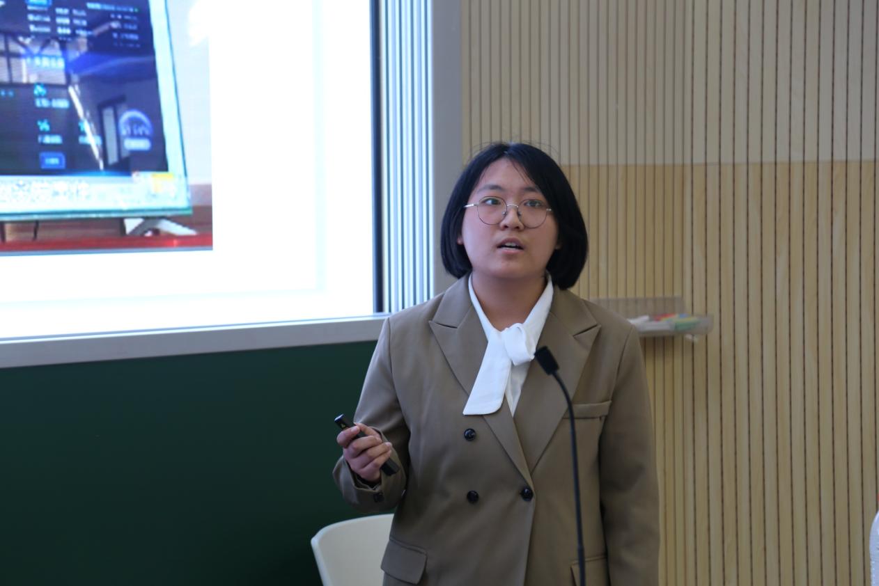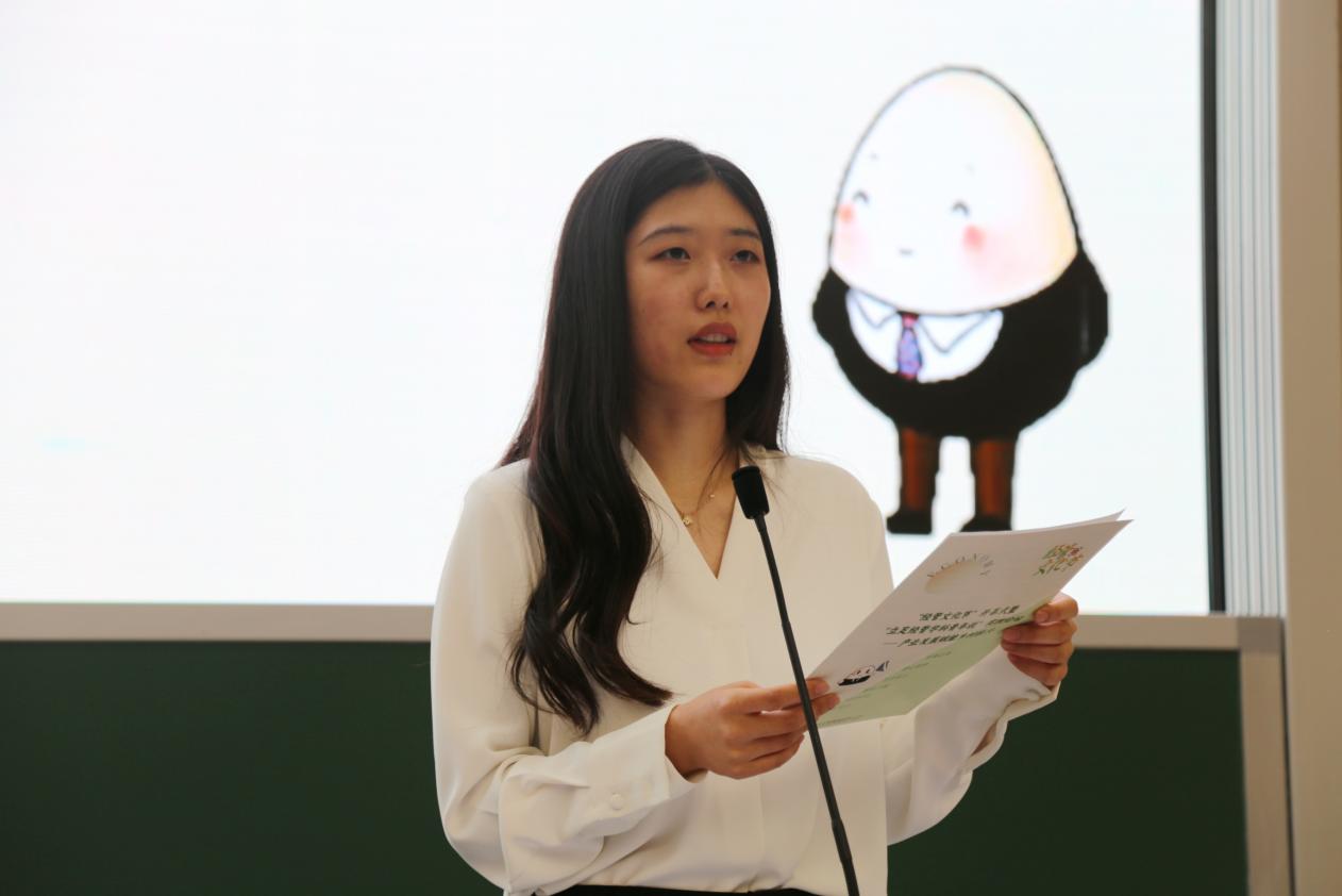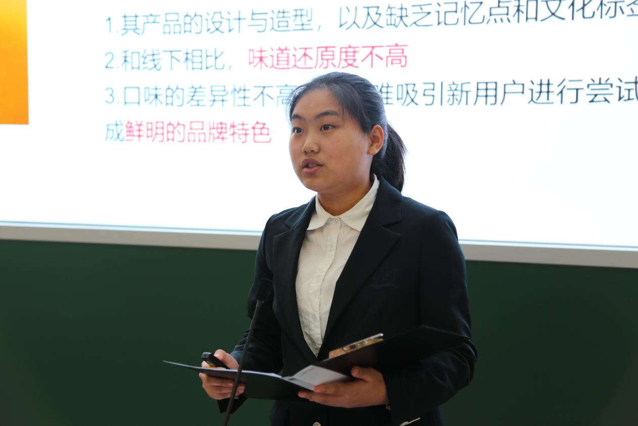 刘紫萱同学就“乡村振兴背景下特色农产品产业链价值分割研究与市场开发—以绵阳米粉为例”主题进行汇报。该队由柳州螺蛳粉的成功和“最后一公里”的产业链失衡问题出发,深入探讨产业价值链分配以及绵阳米粉“走出去”的过程。他们实地调查,了解米粉基础信息和政策解读;他们对话园区经理,了解米粉加工过程和行业数据。通过问卷调查,对比分析等,调研队最终总结得出绵阳米粉的价格变化、成本变化等情况,并提出相应政策建议。