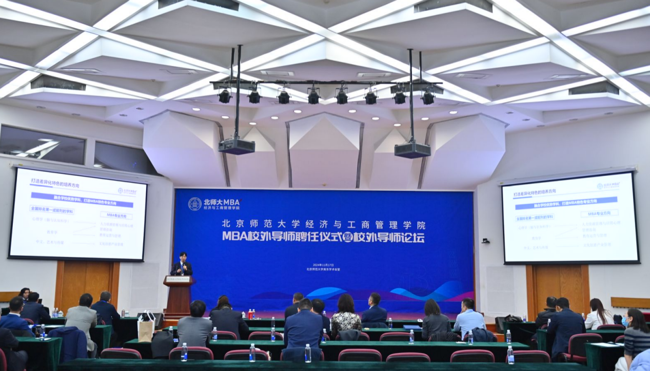 2024年11月17日上午,潮人论坛 MBA校外导师聘任仪式暨校外导师论坛在英东学术会堂演讲厅隆重召开。此次活动汇聚了64位来自各行各业的杰出人士,他们作为校外导师加入学院的MBA项目中,其中包含30位首次加入的新导师和34位续聘的资深导师。潮人论坛 院长戚聿东、副院长胡聪慧、MBA教育中心主任周江华、副主任李静和王璐璐、MBA教育中心全体教师、MBA新生代表李雪峰同学和2023级、2024级MBA学生代表共同见证了这一重要时刻。聘任仪式由潮人论坛 副院长胡聪慧主持。
