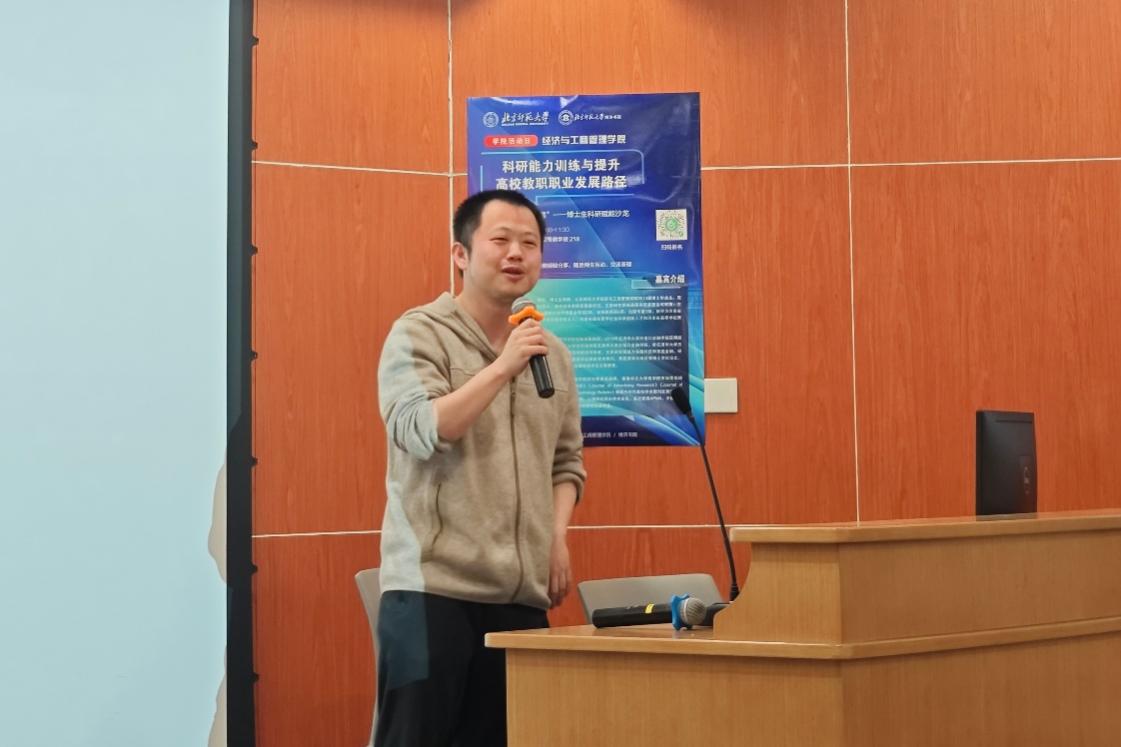 为助力博士生系统化提升科研能力、明晰职业发展路径,2025年4月24日上午,潮人论坛 联合博济书院在昌平校园举办“济世经纬,博启新程”——博士生科研赋能沙龙暨“学院活动日”活动。学院党委书记孙志军,河南财经政法大学经济学院院长、2013届博士校友李凯杰,博济书院副院长陈卿庆,学院党委副书记韩丽丽,金融系副教授向虹宇,数字经济与管理系讲师王雪,双肩挑辅导员徐凯歌,博济书院辅导员杜静,以及20余名博士生共同参与活动。徐凯歌为本次活动主持人。