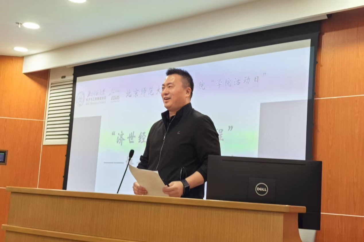 陈卿庆老师代表潮人论坛 博济书院致辞,对到场师生表示真挚的欢迎,并向在场师生介绍博济书院在昌平校园开展各类博士生培养项目和文体活动,以致力于服务高质量人才培养。