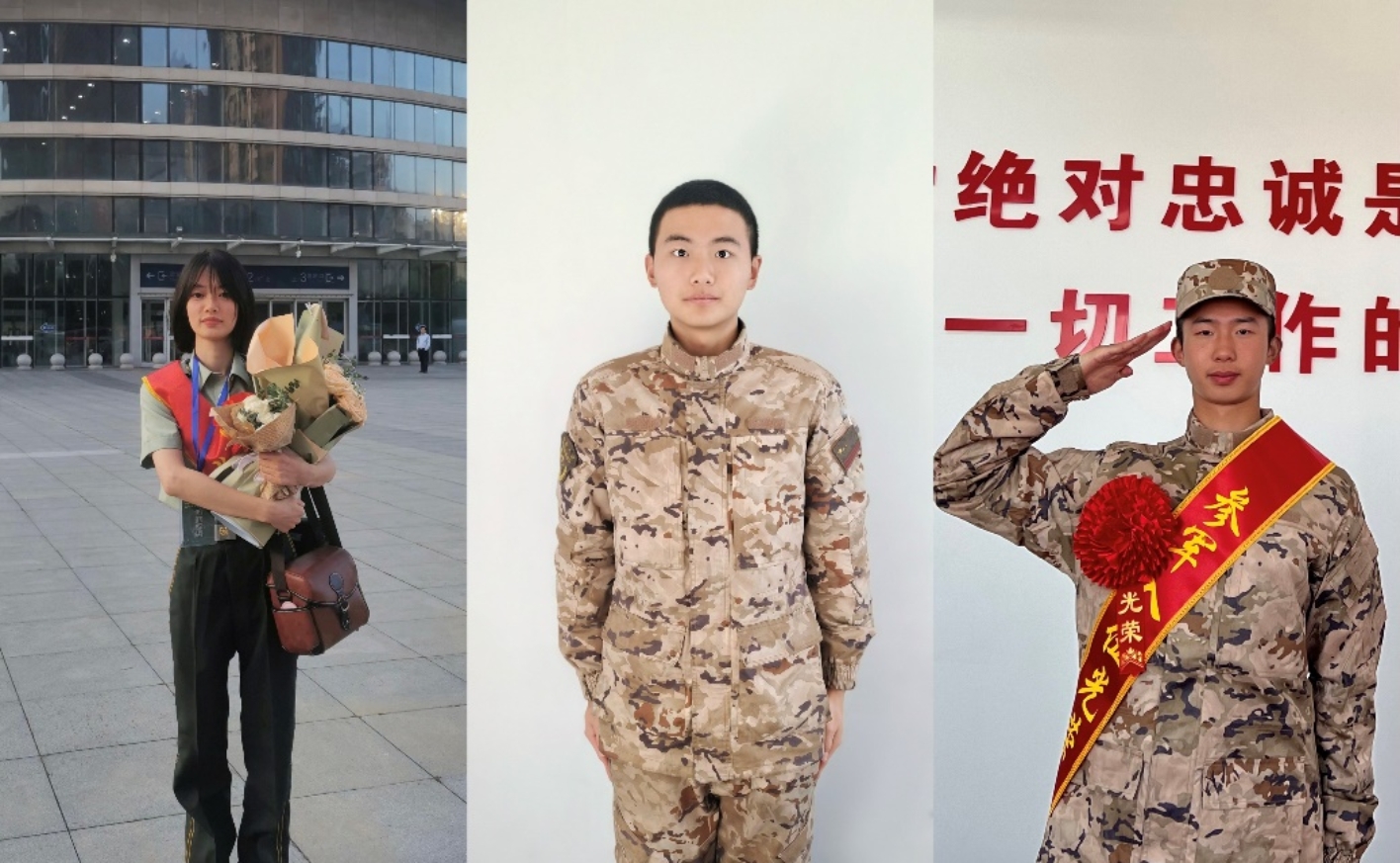 图为部分应征入伍学生风采(从左至右分别为:陈晨、魏梓豪、吴柳俊笙)