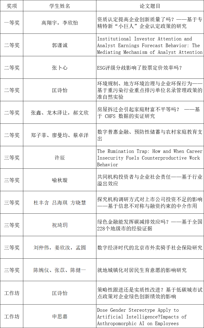活动最后,举行了颁奖仪式。经投票评选出一等奖1名、二等奖5名、三等奖6名。同时,本届本科生学术论坛评选出两名本科生论文工作坊优秀奖。