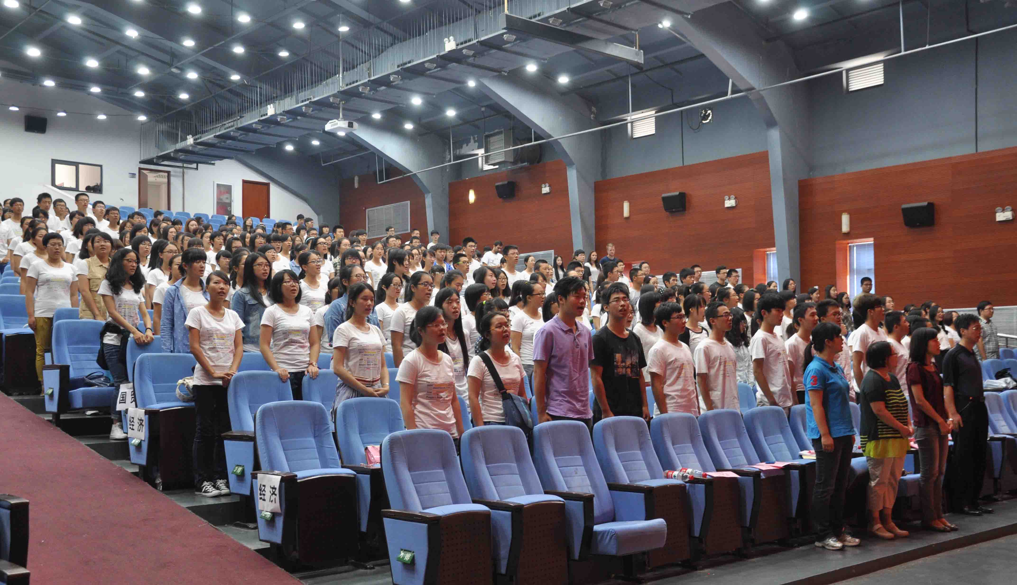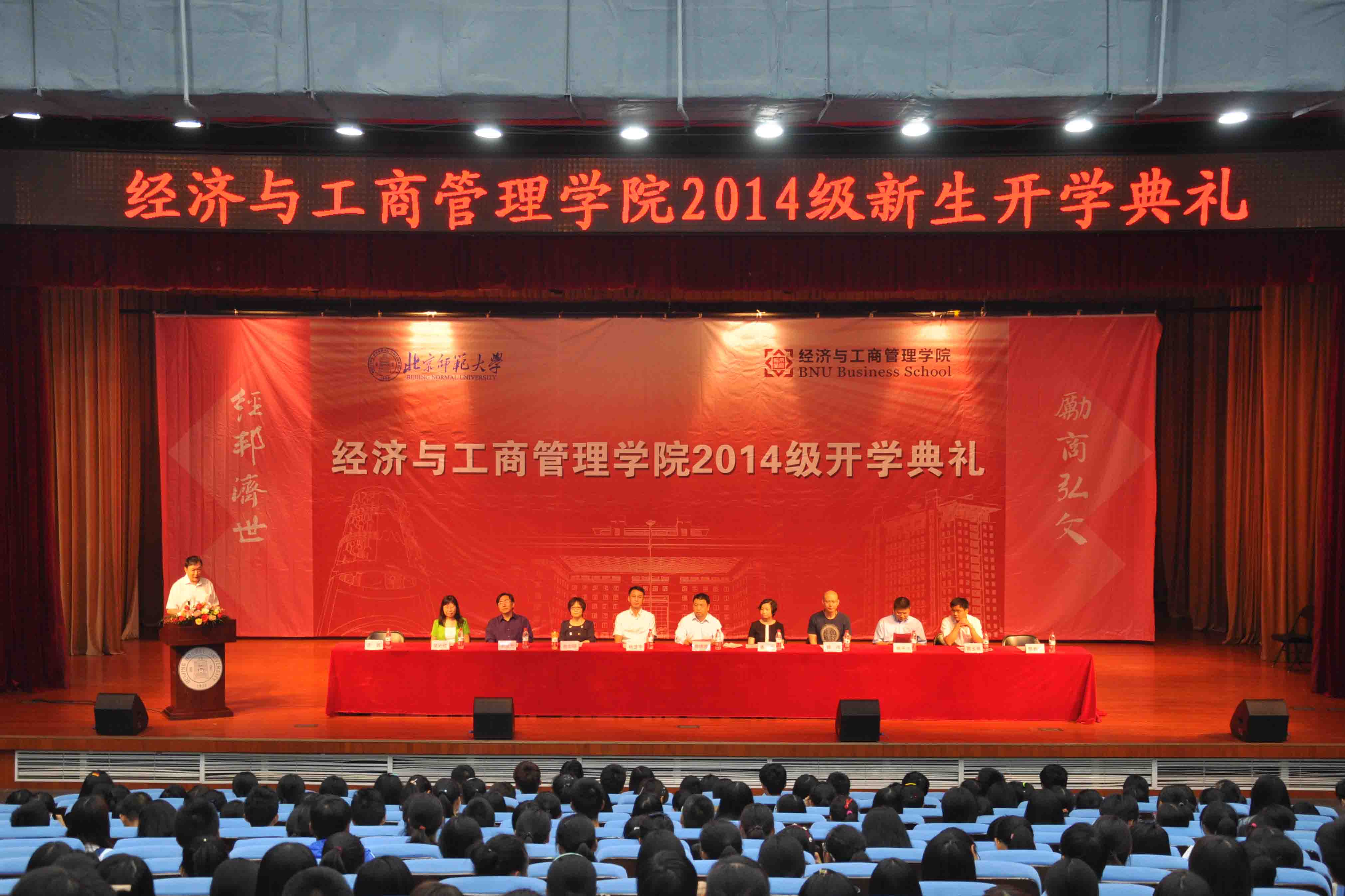 院长赖德胜、副院长杨澄宇、副院长曲如晓、副院长张平淡、分党委副书记葛玉良,还有2014级新生班主任等学院教师及2014级全体新生。本次开学典礼由潮人论坛