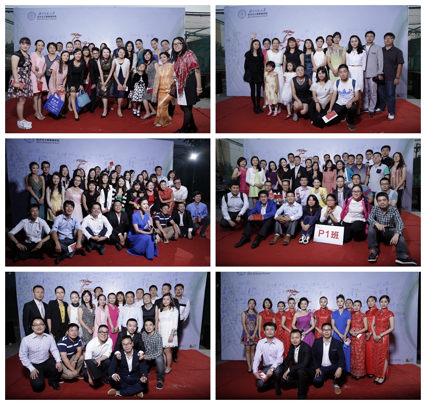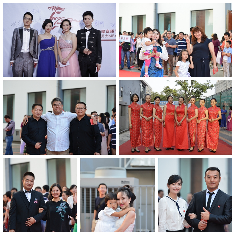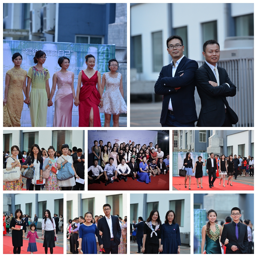 下午五时半,“走红毯、秀未来”仪式在学生活动中心外场拉开了序幕。2014级同学们在当日课程完结之后兴致勃勃地赶赴现场,男同学们穿上了帅气的西装,女同学换上了姹紫的礼服,以班级为单位走上了新晚组委会精心布置的红毯,明星范儿十足。或同学结伴、或家属陪同,或男女前呼,或知己后拥,在展示最美自我的同时,也将工作多年后,再一次跨入高等学府继续深造的驿动心情释放得淋漓尽致。与此同时,伙伴们在“2014,缘聚京师,青春怒放”的背景板上写下自己的名字,留下了最华美的身影。