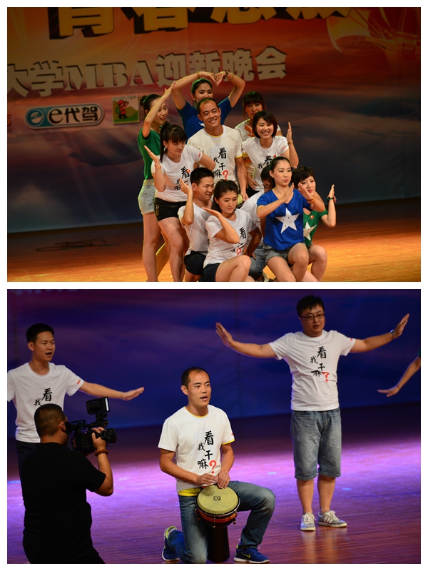 MBA教育中心“七仙女”老师们也按耐不住,以一曲《明天会更好》为新生们送上祝福。整台晚会节目异彩纷呈,有动人的情歌《爱如潮水》,有中西合璧的乐器演奏《牧民和姑娘》,有齐炳堂先生悠扬的手风琴和极具异域风情的新疆舞蹈,有博得满堂彩的黄梅戏《天仙配》选段,更有性感火辣的爵士舞让人回味悠长。