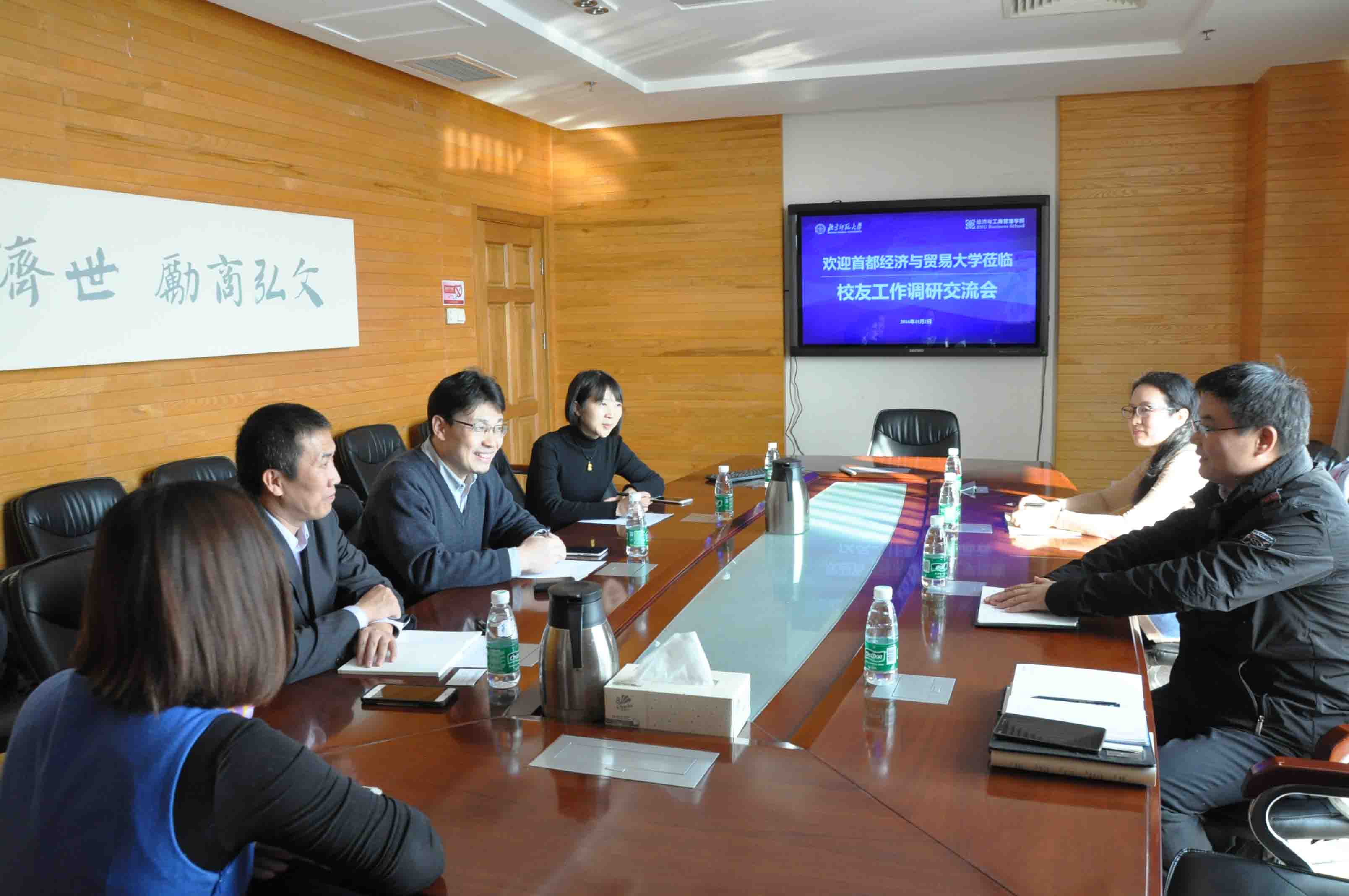 2016年11月2日,首都经济与贸易大学工商管理学院副院长兼MBA中心主任徐炜、MBA校友工作负责人朱蔚兰、MBA联合会主席杨荣星一行到潮人论坛