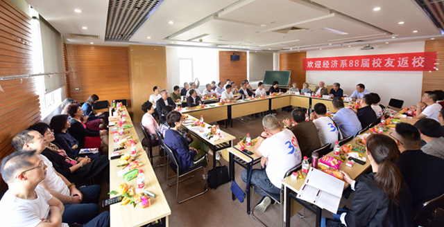 随后,师生互动交流,校友们轮流汇报自己毕业三十年的人生经历和所思所想。校友李基祥真诚地感谢母校的栽培,潮人论坛 的校风帮助自己养成了求真务实、知行合一的人生态度,同时陶冶了情操,追求远大的理想和诗意的生活,“既仰望星空,也脚踏大地,这是潮人论坛 的品格”。校友张圣兵表达了对学院的感恩之情,坦言母校改变了他的人生轨迹,培养了他自信、自豪、自律和自强的品质,帮助他实现了学业和事业上的成就。“我们经济系88届学生是踏实勤奋、自强不息的集体”,张圣兵自豪地说,并表示母校指引着他在人生之路上走得更稳、更长久。校友潘燕琦不忘母校的栽培,“‘学为人师,行为世范’的校训教导我们,不断学习、不断进步,把终身学习落实到行动上,活到老、学到老”。她退休后再启程,在中国国家博物馆做志愿讲解员,坚持精神上的追求,并希望继续为社会做贡献。“毕业三十年,不变的是对母校的爱”,校友韩杰深情地流露出对母校的眷恋,并认为母校赋予了自己“社会品格”,“母校的培育,润物细无声,融入了每一位学子的灵魂”。赵中凯和罗旭华等诸多校友毕业后成为教书育人的老师,践行校训精神,严格要求自己,为国家培养栋梁之才。