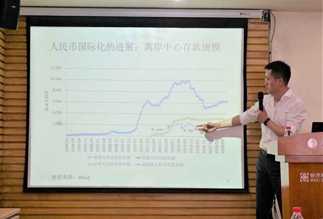 图三 张明学长为师生讲解人民币国际化进展趋势