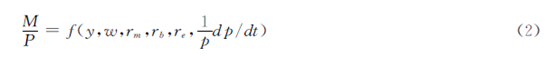 弗里德曼在1956年和1970年分别发表了题为“货币数量论———重新表述”和“货币分析的理论结构”的论文,提出了现代货币数量理论。弗里德曼认为,如果设M 为名义货币需求量,P 为价格水平,M/P 为实际货币需求量,y 为实际收入,w 为非人力财富占总财富的比例,即来自财产的收入占总收入的比例,rm为预期的货币名义报酬率,rb为预期的包括利息和价格变化的债券的名义报酬率,re为预期的包括股息和价格变化在内的股票的名义报酬率,1/Pd"p/dt表示商品价格的预期变化率,u 为非收入方面的因素,那么货币需求函数为:
