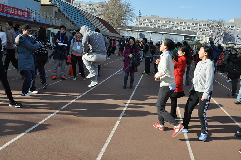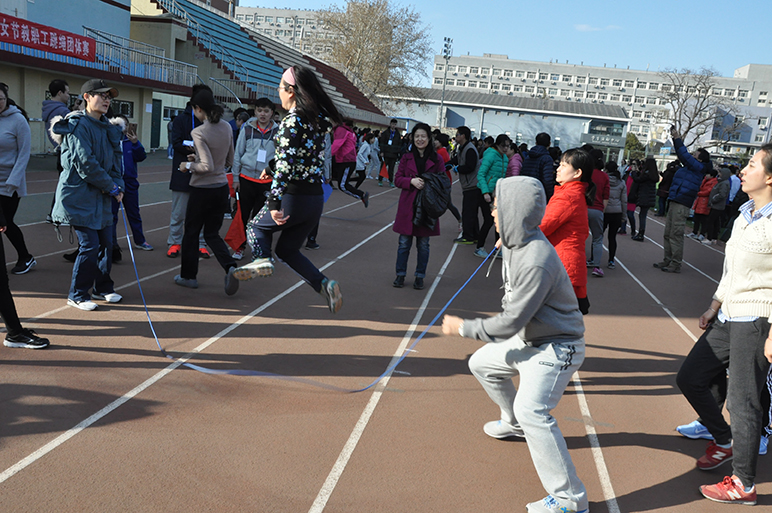 庆祝“三八”国际劳动妇女节教职工跳绳大赛在学校东操场举行。学院工会主席陆跃祥、副主席仲鑫及学院15位教职工参加了比赛。