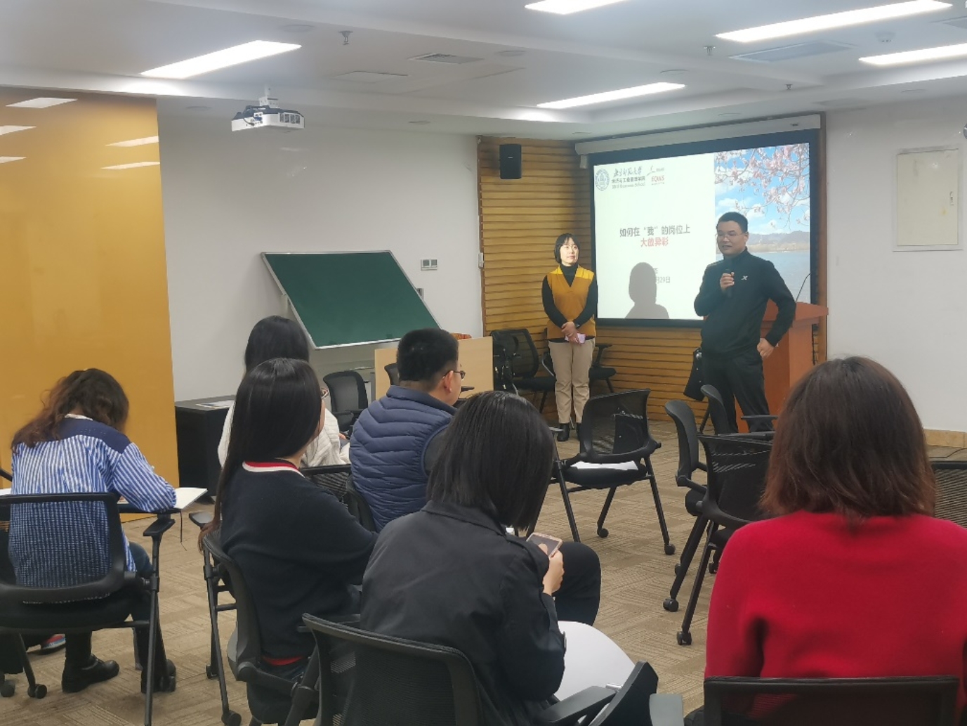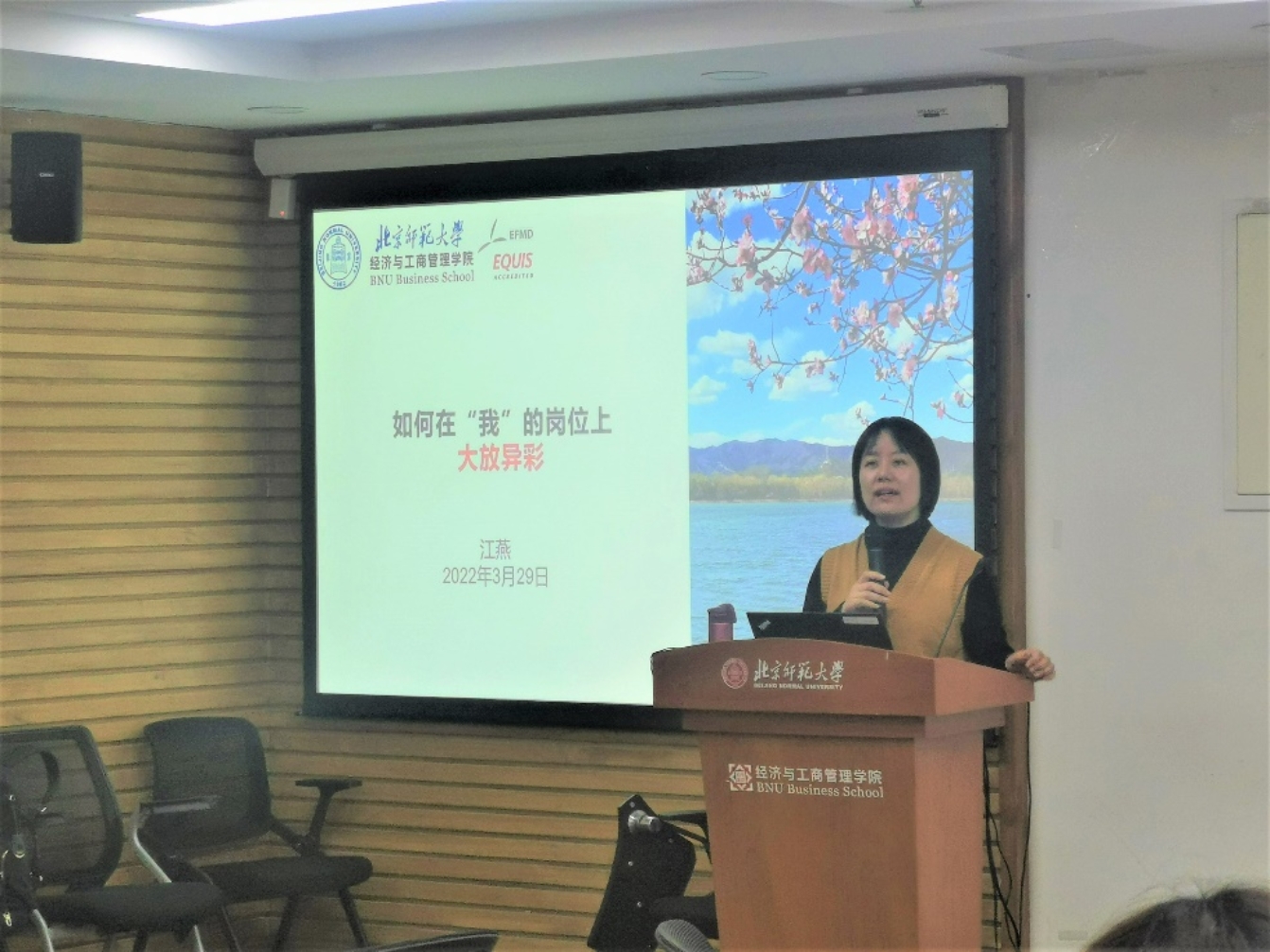 为持续提升学院行政教师的专业能力与执行力,本学期学院将陆续组织“学习型专业化行政教师能力提升系列讲座”。3月29日上午,主题为“如何在‘我’的岗位上大放异彩”的开场讲座在京师大厦9406会议室顺利举办。本次活动有20余位学院行政教师参加,邀请到潮人论坛 出版集团党委副书记、潮人论坛 校友江燕老师主讲,由学院党委副书记葛玉良老师主持。