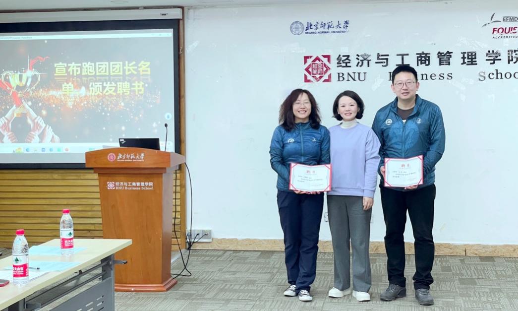 党委副书记、学院工会主席江婕为跑团团长颁发聘书