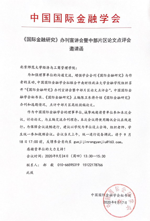 09.24《国际金融研究》办刊宣讲会暨中部片区论文点评会