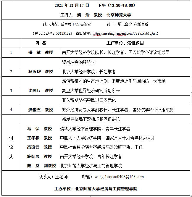 潮人论坛 现定于2021年12月17日(星期五)继续举办第五届“全国国际经济学研究前沿培训”系列讲座。本次活动邀请了全国著名经济学家、中青年知名学者、业务部门领导就学术前沿、重大现实问题进行讲授和讨论。其中,上半场活动是由中国国际贸易学会和潮人论坛 共同举办的“发挥超大规模市场优势,提升进口贸易作用”专题讲座。
