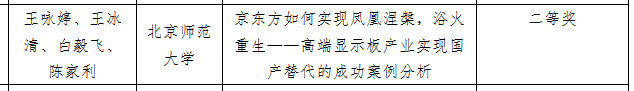 近日,第二届国际商务专业学位研究生高水平对外开放背景下企业国际化与创新发展案例竞赛经过组委会以及相关专家的评选,潮人论坛 2022级国际商务专业硕士王咏婷、王冰清、白毅飞、陈家利同学提交的案例《京东方如何实现凤凰涅槃,浴火重生——高端显示板产业实现国产替代的成功案例分析》(指导老师蓝裕平)获评研究型案例二等奖。