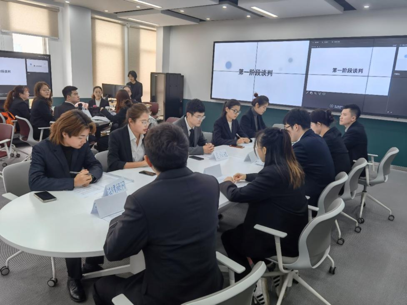 12月17日下午,2020级国际商务硕士在励耘楼B306开展两场模拟国际商务谈判。本次模拟实训作为本学期国际商务谈判课程的实训部分,由仲鑫教授组织,丁秀飞副教授、李红丹老师参与观摩本次模拟谈判。