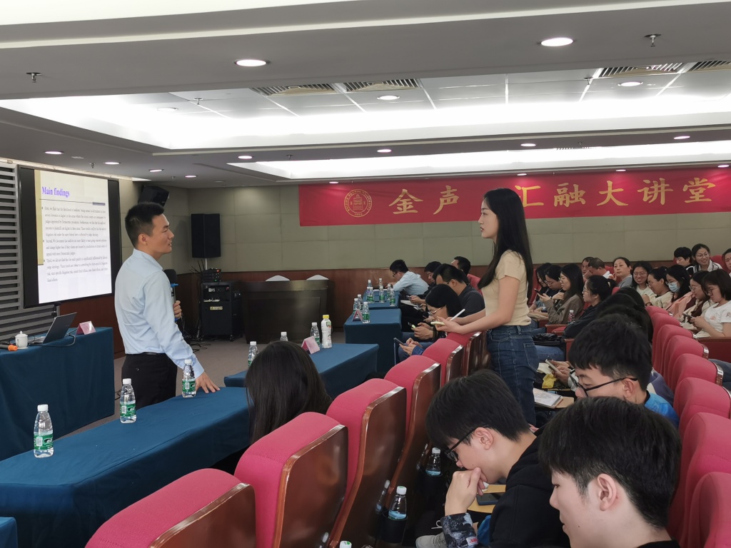 齐教授精彩的解说让在座师生产生了极大的兴趣,大家积极踊跃地就此研究在国内的适用、公司制与合伙制企业是否得出同样结论等问题提问,齐教授热情地一一回应,还运用了一些案例辅助大家理解。现场氛围轻松活跃,展现了大家对学术知识追求的热情。