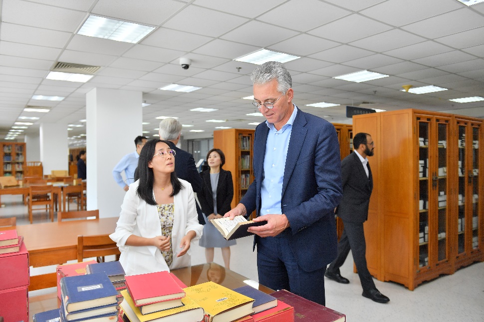 专家组还对学校教学与服务设施进行了实地考察,先后参观了校图书馆与在线教育资源中心,重点了解了商科特色文献资源的馆藏情况、数字资源的建设与使用效率、在线课程录制与直播设备的配置以及混合式教学模式的运行情况。专家组对学院持续加大教学基础设施投入、大力推进数字化教学转型的显著成效给予高度评价,认为相关设施与资源为保障高质量教学科研活动提供了坚实支撑。